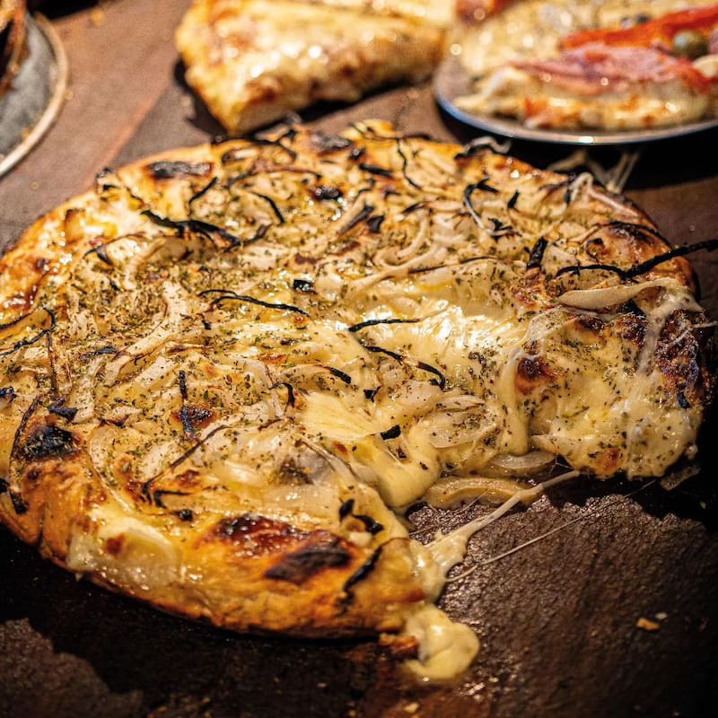 Para quienes disfrutan de las verduras, hay una exquisita pizza con espinaca, salsa blanca y queso parmesano gratinado. También se pueden elegir entre dos tipos de fainá, que vienen de regalo: simple o con cebolla, orégano y ají molido.