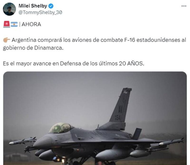 En ese sentido, a mediados de marzo, fue el propio presidente quien dio indicios de un avance en las negociaciones para adquirir los caza F-16. El mandatario compartió un posteo en redes sociales, el cual hacía alusión a la compra de aviones supersónicos.
