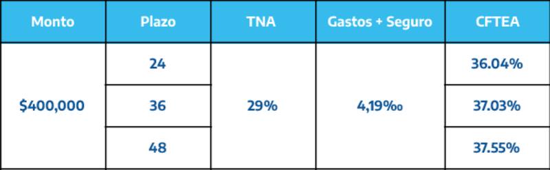 Los montos van desde los $ 5000 hasta los $ 400.000 a pagarse en 24, 36 o 48 cuotas, cada tramo no podrá exceder el 30% del ingreso mensual.