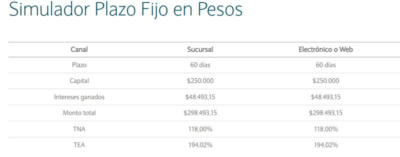 Si elegís que tu inversión sea a largo plazo, los valores sobre los intereses ganados serán mayores. Si optás por poner $ 250.000 en un plazo fijo en pesos por 60 días, las ganancias serán de $ 48.493,15.