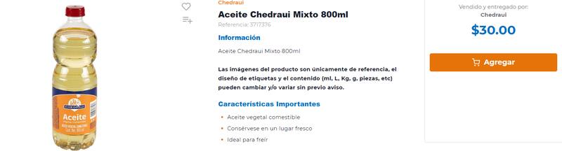Según el análisis realizado por la Profeco, el aceitede Chedraui se destaca como la opción ideal para freír y su precio de 30 pesos lo hace aún más atractivo para los consumidores.