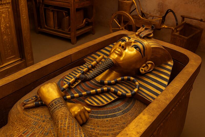 Un descubrimiento arqueológico sigue deslumbrando al mundo más de un siglo después: la tumba del faraón Tutankamón, hallada en 1922 por el arqueólogo británico Howard Carter, contenía más de 110 kilos de oro puro entre joyas, amuletos, máscaras y otros objetos funerarios.