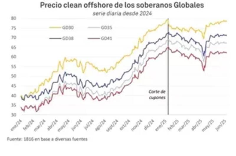 "El Tesoro pagará u$s 4200 millones este 9 de julio y el mercado evalúa el destino de los fondos. La gran incógnita es si esta vez, a diferencia de lo ocurrido en enero de 2025, el mercado aprovechará los flujos para recomprar bonos soberanos. En esta ocasión, el contexto luce más favorable ya que los fundamentos económicos han mejorado notablemente", indicó.