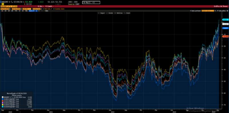 Finalmente, en el caso de los bonos más largos, estos ganan entre 16% y 29% en lo que va del 2024.