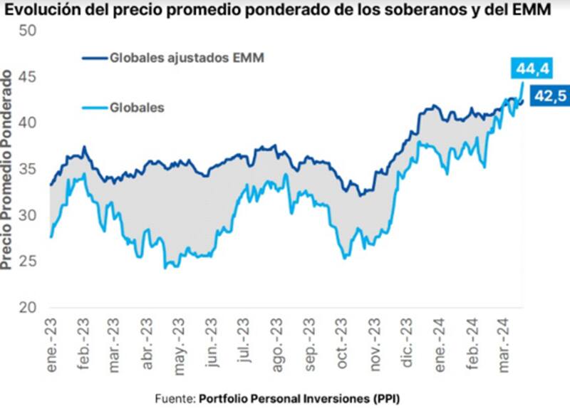Con el reciente avance, ya hay bonos dentro de la curva cotizando en máximos históricos, como el caso del Global 2046.