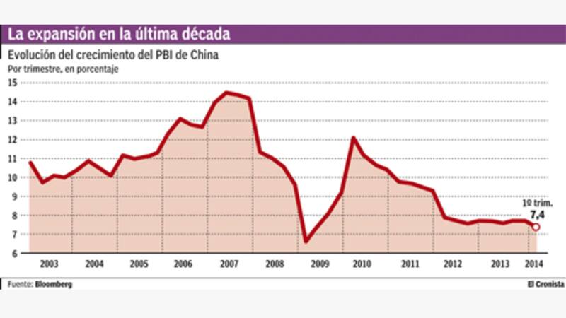 La economía china creció 7,4% durante el primer trimestre del año, tres décimas menos que en el último cuarto de 2013, y la cifra más baja durante el último año y medio, según informó ayer la Oficina Nacional de Estadísticas del país (NBS). De todas formas superó las expectativas del mercado de una expansión de 7,3%.