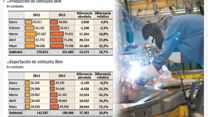 Con esta cifra, las terminales produjeron entre enero y mayo un total de 331.089 unidades, lo que arroja un crecimiento del 18,7% en su comparación con el mismo período de 2012 cuando de las líneas de producción habían salido 278.815 unidades.