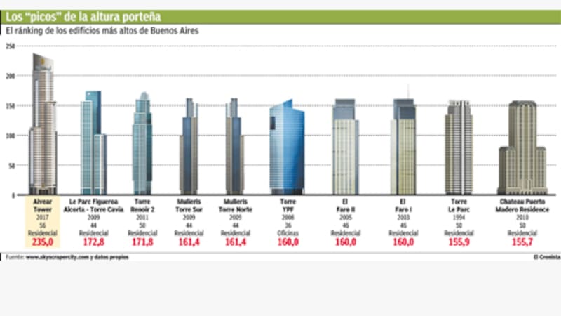 Como edificio en general, superará en Sudamérica además a las dos torres Parque Central, Oeste y Este, de Caracas, Venezuela, de 225 metros cada una, y a Torre Colpatria, de Bogotá, Colombia, de 196 metros. El Alvear Tower también será más alto que la torre Titanium La Portada, de Santiago de Chile, y que el Centro de Comercio Internacional, de Bogotá.