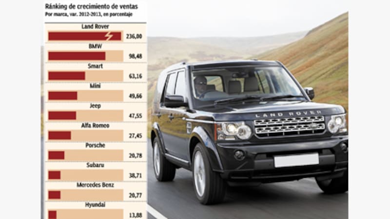 En los primeros tres meses del año Land Rover vendió 84 autos contra los 25 del mismo período de 2012. BMW ya entregó este año 1.179 unidades, contra las 594 que había vendido entre enero y marzo del año pasado. En este caso la suba fue de 98,48%. Hay más: las ventas de Smart crecieron 63,16% y las de Mini, 49,66%. Los datos surgen del último informe de la Asociación de Concesionarios de Automotores de la República Argentina (Acara).