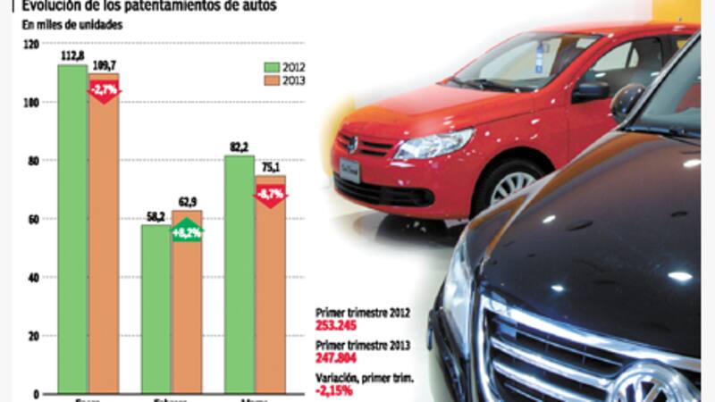 La alemana Volkswagen, líder del mercado local, redujo sus ventas en marzo 15,16%. Chevrolet, la segunda, vive una situación similar con una caída del 17,44% y la francesa Renault, tercera en el podio entre los que más comercializan, redujo sus ventas durante marzo 14,37% respecto igual mes del año pasado. Con el número de marzo también se cerró el primer trimestre con un acumulado de 247.804 vehículos, apenas un 2% menos que lo que se había obtenido en el período eneromarzo de 2012, en el que se habían patentado hasta esta fecha 253.245 unidades.