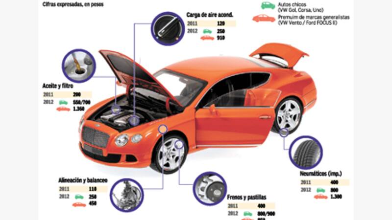Aunque existe una disparidad de precios bastante importante, en todos los casos consultados coincidieron que para realizar un cambio de aceite y filtro, freno delanteros con pastillas, alineación y balanceo, y una carga de gas de aire acondicionado; arranca en $ 1500. En 2011 lo mismo no costaba más de $1000 y en 2010 no pasaba los 700 pesos.