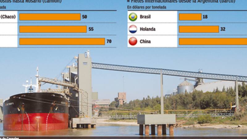 Más allá de las salvedades, el costo del transporte de granos en camión se prueba caro en la Argentina si se lo compara con el valor de los fletes internacionales. Enviar una tonelada de soja a China es sólo 32% más caro que llevarla desde Resistencia a Rosario, mientras que si se toman otras distancias, como Salta, el valor del envío en camión es 4,5% mayor.
