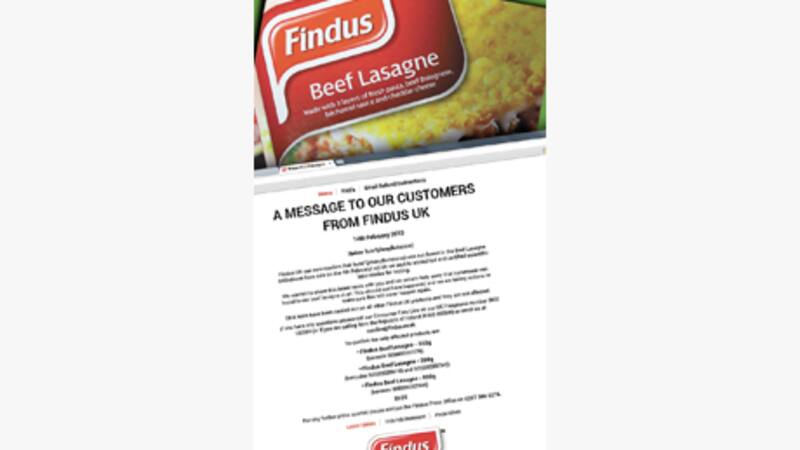 Desde hace unos pocos días, Findus viene actualizando sus posiciones en su página web (http://www.findus.co.uk); primero lo hizo al pie del site como si alguien hubiera ingresado allí por alguna otra razón que los Beef Lasagne 100x100 horse meet y últimamente se estiró al ancho de toda la pantalla, desplazando el resto de la información habitual con un esquema de Preguntas Frecuentes y una propuesta algo extemporánea de reembolsar el dinero de los clientes insatisfechos. Igual que muchas compañías de distintas industrias, la crisis no encontró a Findus suficientemente preparada.