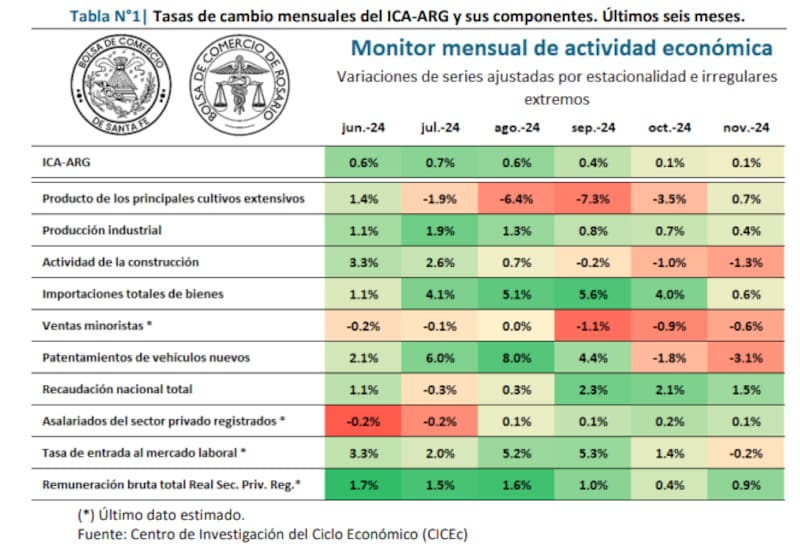 Se ve en el consumo minorista, que no para de caer. El indicador de Actividad Económica de las bolsas de Rosario y Santa Fe del noviembre marca que la recuperación se amesetó. Su ICA creció, pero apenas 0,1% en noviembre.