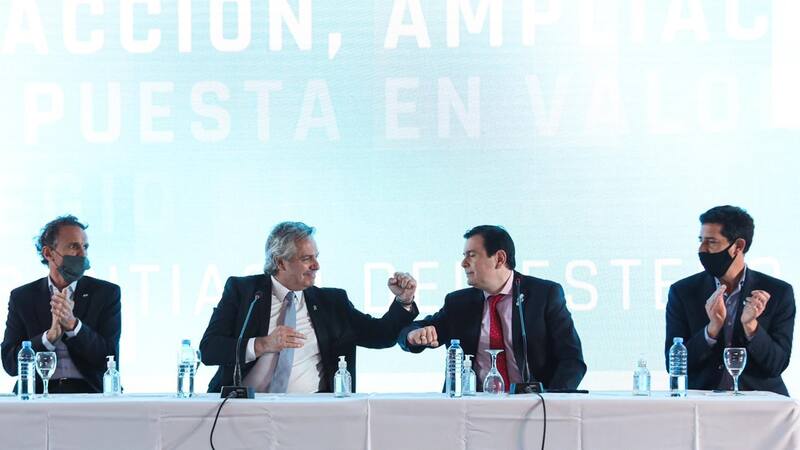 Además de Fernández, viajaron desde Buenos Aires el ministro del Interior Eduardo de Pedro, el de Obras Públicas Gabriel Katopodis, el secretario de Obras Públicas Martín Galli y el secretario General de Presidencia Julio Vitobello.