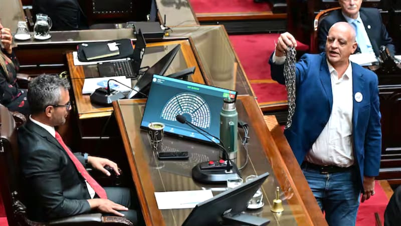 La avanzada del peronismo también contó con un episodio en el que el diputado Horacio Pietragalla dejó una cadena en el escritorio de Presidencia, como regalo a su titular, Martín Menem. “Esta ley es una ley que nos retrotrae a la esclavitud y te voy a hacer entrega del símbolo de esta ley hoy, que es claramente un retroceso para nuestros derechos laborales”, le dijo el exsecretario de Derechos Humanos de Alberto Fernández.