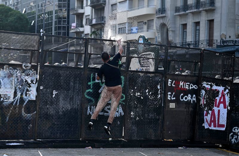 Afuera del Palacio Legislativo el clima fue hostil por el cuarto paro general de 24 horas que llamó la CGT, en reclamo por el proyecto laboral. El punto de inflexión fue la adhesión de la Unión Tranviarios Automotor (UTA), la cual impidió que la gente se traslade para ir a trabajar.