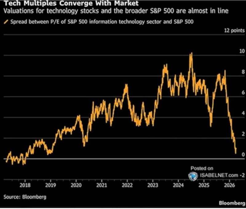 Con el ajuste actual, las valuaciones de las tecnológicas se arbitraron al resto de los sectores en Wall Street.
