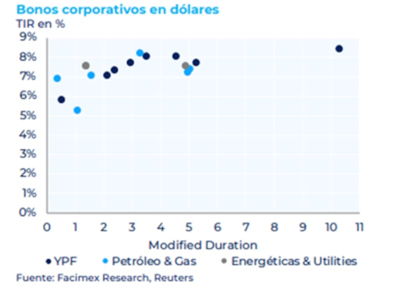"Si bien los retornos de las obligaciones negociables están bastante moderados en comparación con los niveles observados en períodos anteriores, todavía podemos ver oportunidades dentro de la curva local, Nos gustan YPF o Pampa Energía, ambos con rendimientos cercanos al 8%. Son dos de las empresas con más sólidos indicadores financieros de apalancamiento y cobertura de intereses", indicó.