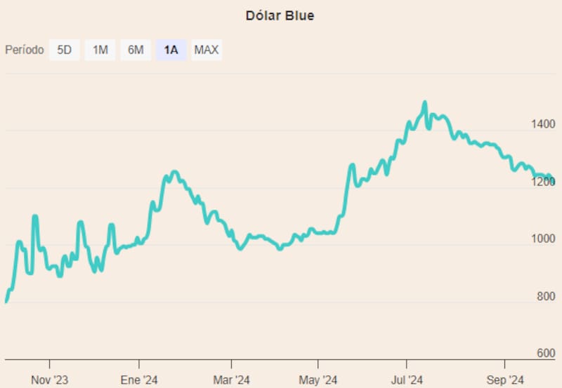 Las bajas de los dólares financieros arrastraron a la cotización en el mercado informal. El precio del dólar blue retrocedió 0,8% y quedó en $ 1185 en la punta de compra y $ 1205 en la de venta. Sin embargo, en algunas cuevas del centro de la City llegó a venderse por debajo de los $ 1200 en lapsos de la jornada.