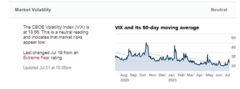 Otro de los subíndices que están incluidos dentro del "Fear and Greed Index" de CNN es la volatilidad de mercado o "Market Volatility".