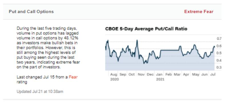 Cuando el ratio Put Call alcanza niveles de Extreme Fear implica que hay demasiadas apuestas bajistas a partir del volumen de puts en relación a la cantidad del volumen de los calls.
