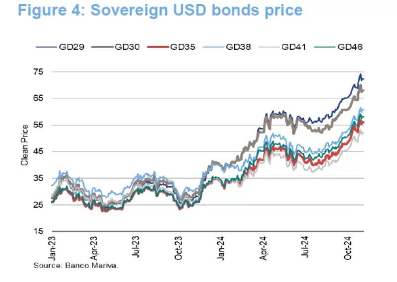Los analistas de Research Mariva agregaron que, a pesar del viento en contra externo que ha comenzado a afectar a los mercados emergentes debido a la incertidumbre ante las elecciones del 5 de noviembre en Estados Unidos, los buenos fundamentos económicos a nivel local están dando soporte a los precios de los bonos soberanos.