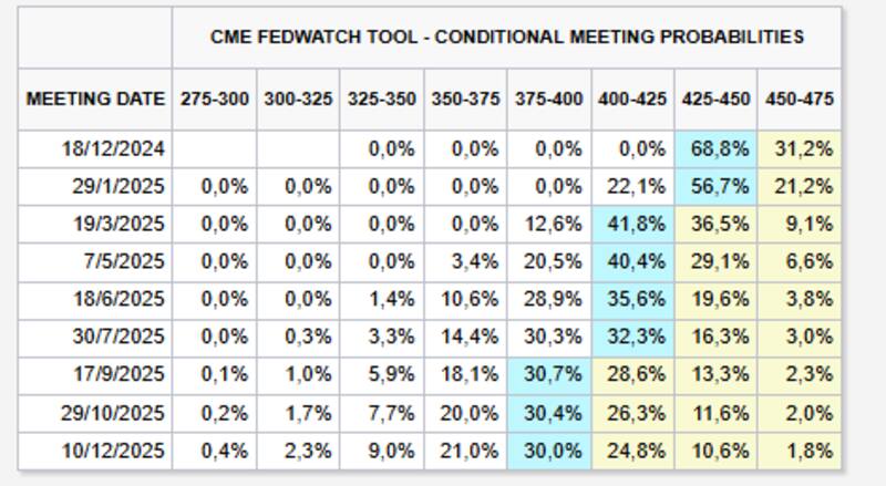Las probabilidades de ver un recorte de 25 puntos básicos en diciembre son de casi 70%, por lo que el mercado espera que la tasa finalice este año en el rango de 4,25% y 4,5%.