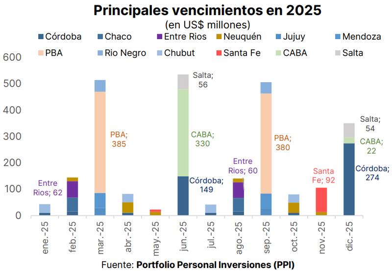 Para Portfolio Personal Inversiones (PPI), todo parece que indicar que varias provincias volverán pronto al mercado internacional de deuda. Además de CABA, considerada como la "alumna ejemplar", otras candidatas para rollear deuda son Córdoba, con vencimientos u$s 385,6 millones este año, y Neuquén, que deberá pagar u$s 193 millones. A la lista también se suman Santa Fe y Mendoza.