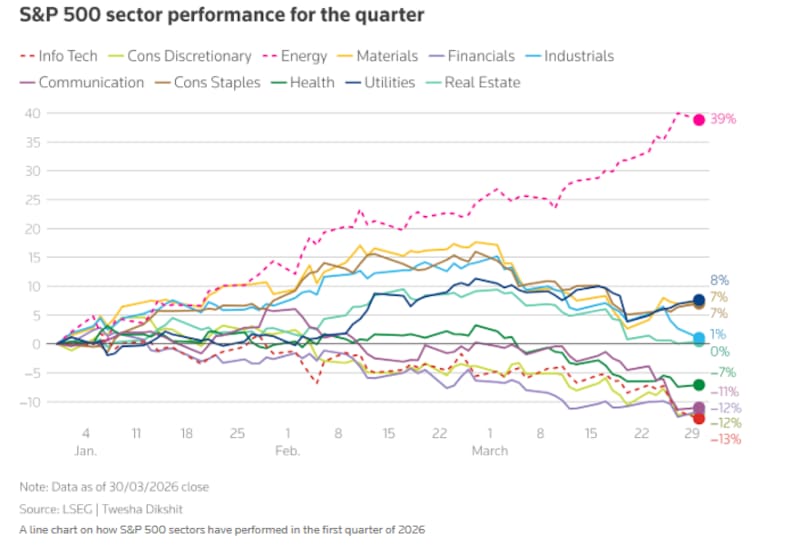 En marzo, los principales índices de Wall Street cerraron con caídas claras, reflejando un mes dominado por la aversión al riesgo, la suba del petróleo y el endurecimiento de las condiciones financieras.