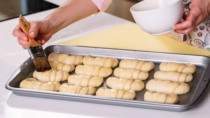 - Hornear: pintar con huevo batido y hornear a 180°C por 12-15 minutos hasta que estén doradas.