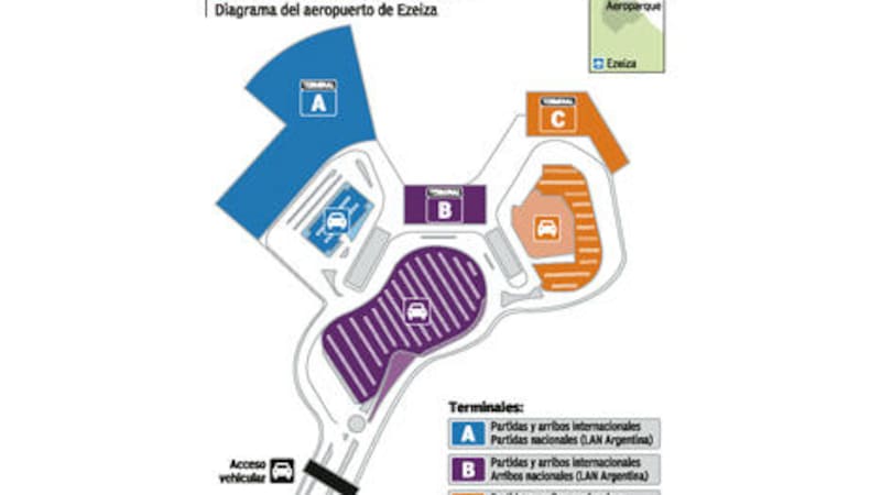 Durante los 29 días que permanecerá cerrado el Aeroparque Metropolitano Jorge Newbery, los vuelos nacionales se repartirán en las terminales A, B y C del aeropuerto internacional de Ezeiza, según el esquema de partidas y arribos difundido ayer por Aeropuertos Argentina 2000.
