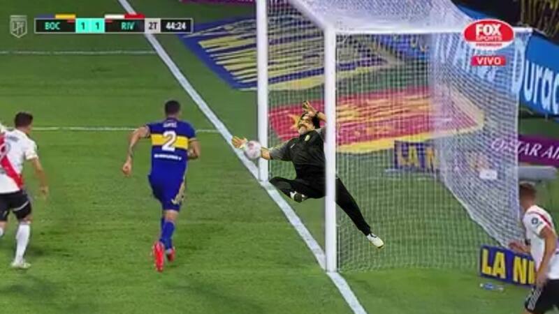 Así es, "Fua, el Diego" se convirtió rápidamente en tendencia luego del forcejeo entre Girotti y Rojo que llevó a un centro y a un desvío de cabeza de Marcos Izquierdoz que casi entra, pero no: la pelota picó a centímetros del arco y realizó una parábola tan particular que hasta parece mentira. ¿Los hinchas de Boca? Festejando y agradeciéndole a Diego Armando Maradona.