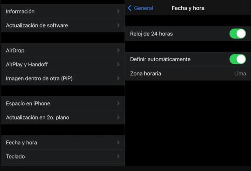 - A continuación, hay que desactivar el botón con la leyenda "definir automáticamente" y "24 horas".