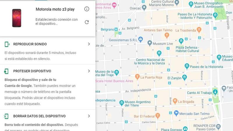 Además, el smartphone tiene que tener activado la función "Encontrar mi dispositivo". (para hacerlo, el usuario debe ingresar a Ajustes > Seguridad y ubicación > Encontrar mi dispositivo y luego activar las opciones "Localizar este dispositivo de forma remota" y "Permitir borrado y bloqueo remotos").