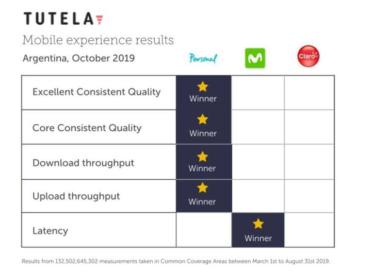Personal salió victorioso en todos los ámbitos, tomando el primer puesto por una experiencia de red móvil consistente, cumpliendo con los estándares de Calidad Core Consistent, es decir, adecuados para el uso diario en medios sociales, streaming de video de definición estándar o para hacer llamadas VOIP a través de aplicaciones como Skype o Whatsapp.