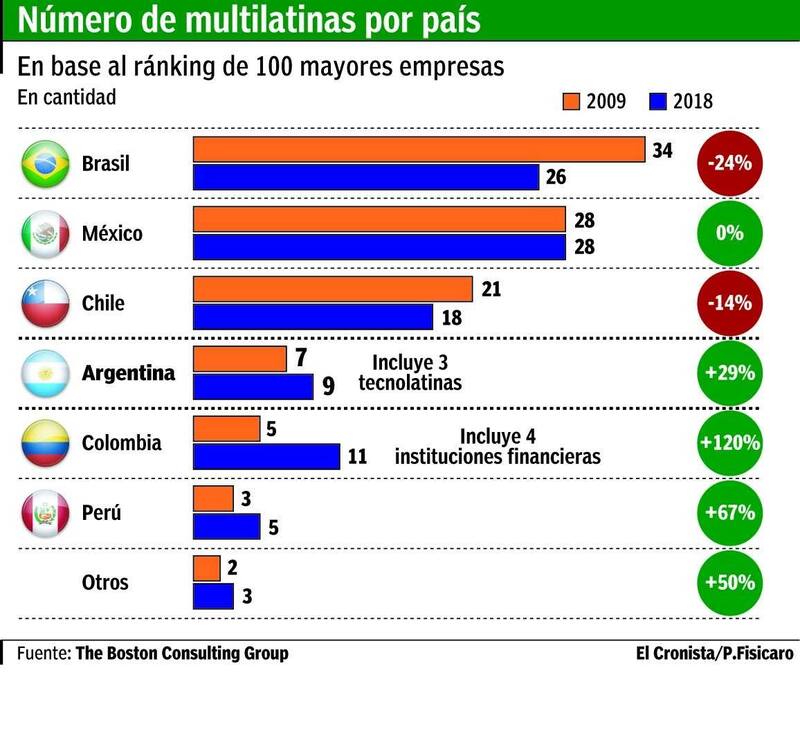 "La Argentina se destaca en el rubro tecnológico por sus recursos humanos capacitados, espíritu emprendedor y un marco de apoyo como fue la Ley del Software. Sin embargo, tiene menos multilatinas que lo que su PBI per cápita y tamaño de mercado indicarían", señaló a El Cronista Rodrigo Rivera, socio de BCG y co-autor del informe. De hecho, en cantidad de grandes empresas se ubica por detrás de México (28 multilatinas), Brasil (26), y Chile (18).
