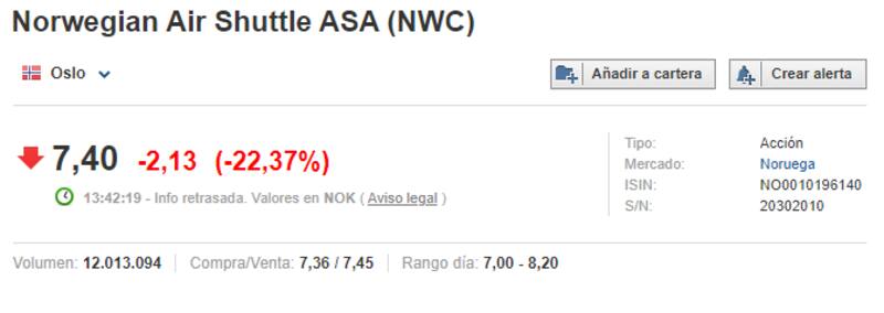 Las principales bolsas globales se hunden hasta 7%, y en ese contexto y como era de esperar, el mayor impacto lo sufren las aerolíneas. Norwegian se hunde aún más tras el veto de Trump a Europa. La aerolínea noruega acumula una baja del 15% ayer y más de 20% hoy.