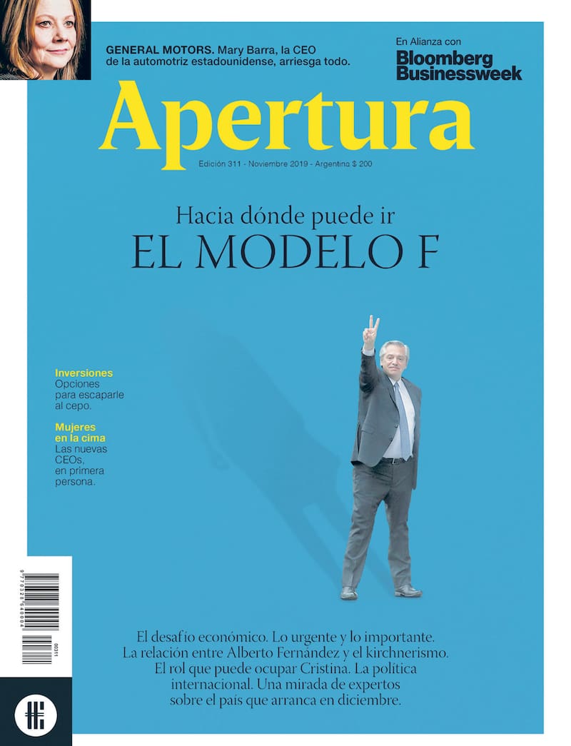¿Qué se puede esperar de esta nueva etapa? En su nuevo número de noviembre que ya está en los kioscos, APERTURA, la revista líder de negocios y economía, encaró una respuesta a esa pregunta a partir del análisis de los tres focos que despiertan mayor atención: el económico, el político y el posicionamiento internacional. Para resumir el cuadro de situación entrevistó a tres especialistas: el economista Luis Secco, el politólogo Miguel De Luca y el experto en política exterior Alejandro Corbacho. "Fernández comparte con Macri la subestimación del desafío macro", sentencia Secco y subraya que los problemas no se arreglan solo con política, sino que hace falta un plan integral. "En dos años, Alberto se consolida como jefe del peronismo", vaticina De Luca, al analizar cuáles serían los próximos pasos del presidente electo en función de lo que enseña la historia. "Habrá problemas con Brasil", anticipa Corbacho al describir las líneas que pueden marcar las relaciones internacionales del nuevo gobierno.