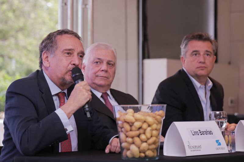 Argüelles, en el medio, en la presentación de la papa transgénica en 2018