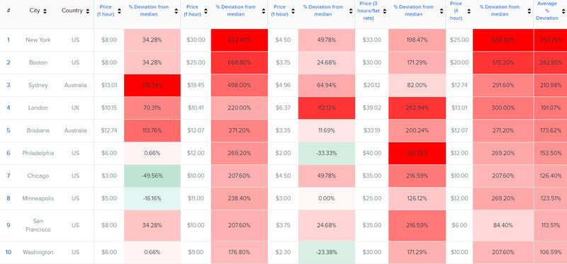 Por su parte, el podio lo completaron Boston y Sydney, Australia, con tarifas entre 282,85% y 210.98 por ciento más altos que la media global.