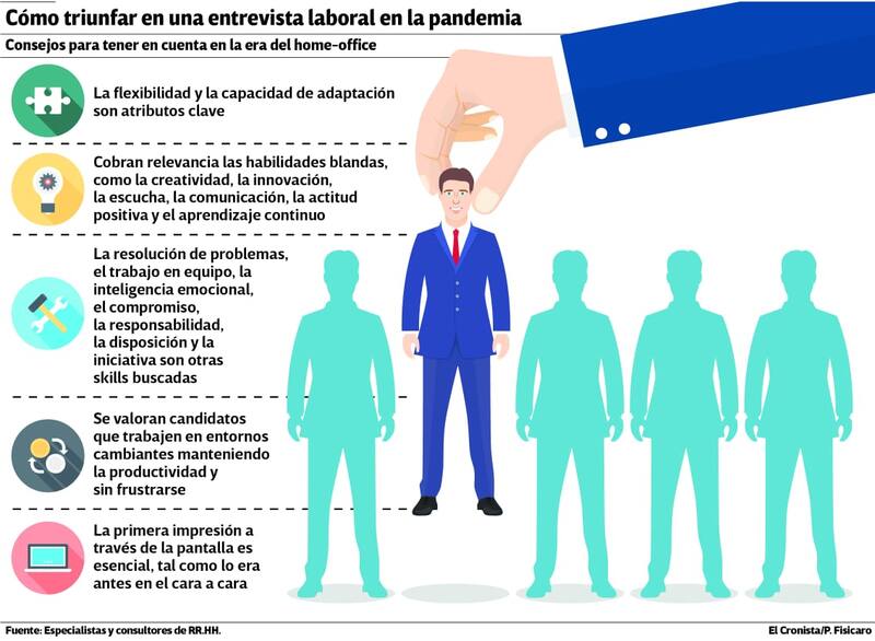 Para los entrevistadores, la primera impresión a través de la pantalla es esencial, tal como lo era antes en el cara a cara. "Se detectan aspectos de la personalidad, pero también brinda información de la persona que el formato tradicionaldeja afuera. Por ejemplo, si está familiarizado con la tecnología, si utiliza con facilidad las plataformas digitales o si presenta problemas con el uso de dispositivos", ejemplifica.