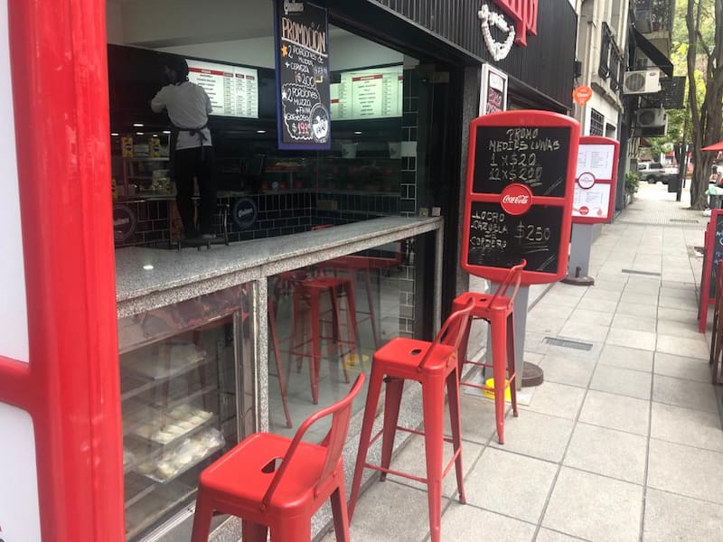 "La gente viene a comer parada. Muchos lo hacen en el auto o de pasada", dice su dueño. Cuando, en cuarentena, se habilitó el take-away, los clientes retiraban su compra y la saboreaban en la plaza, agrega.