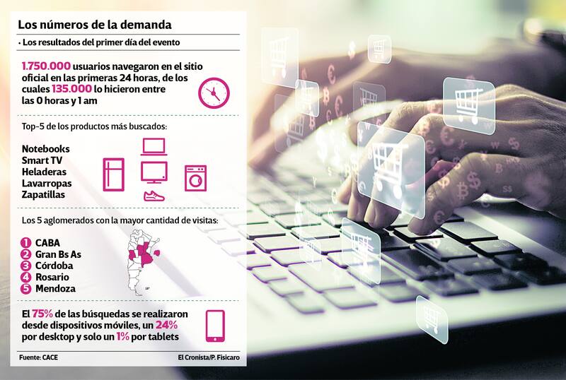 Ansiosos por comprar desde el minuto cero con descuentos que alcanzan el 50%, de los 1.750.000 consumidores que visitaron el sitio web oficial, 135.000 lo hicieronen la primera hora versus los 50.000 que ingresaron en el anterior festival de rebajas entre las 0 horas y la 1 de la madrugada, según la CACE.