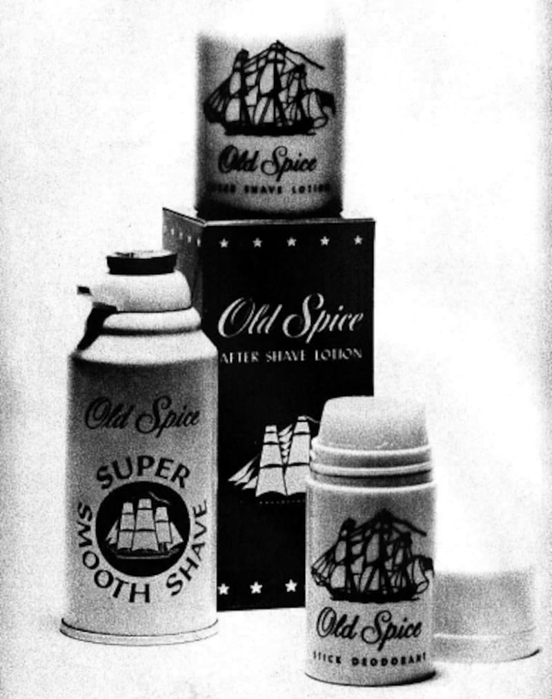 Los carteles publicitarios de Old Spice estaban protagonizados por hombres elegantes navegando lujoso yates. "Para hombres que comandan el éxito", indicaba el slogan en aquella época.