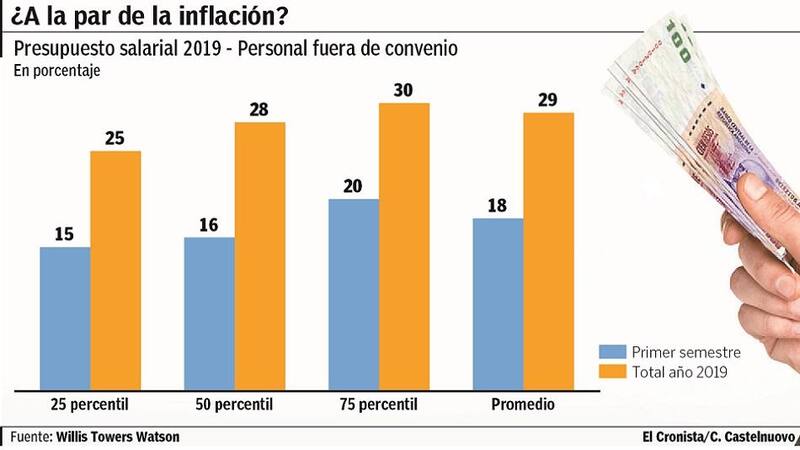 La mayoría de las empresas prevé aumentar este año un 29% los sueldos a su personal fuera de convenio (quienes no participan de paritarias sindicales), por encima del presupuesto oficial del Gobierno, que fijó ese índice en un 23% para 2019.