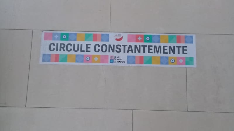 Un cartel en el piso del pasillo del Alto Palermo invita a "circular constantemente"