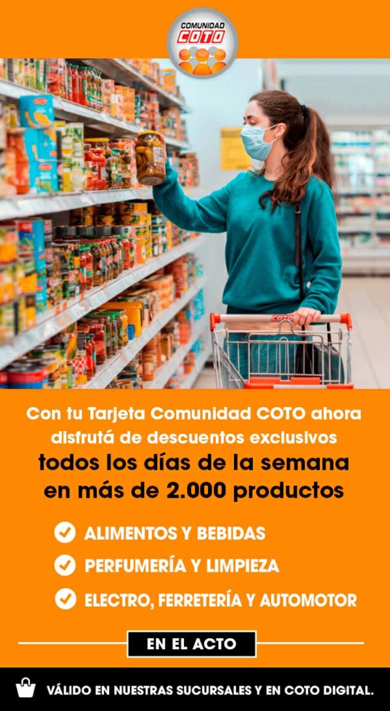 Coto pasó de un esquema de promociones de fin de semana a propuestas diarias, con descuentos de hasta el 80% en productos seleccionados y en la segunda unidad, 2x1 y 4x2. Desde la empresa confirman la información: "Las rebajas van desde el 30% hasta el 80% en algunos casos, con beneficios extra para los clientes adheridos a Comunidad (antes de la pandemia ofrecía rebajas solo dos días a la semana, ahora hay todos los días).