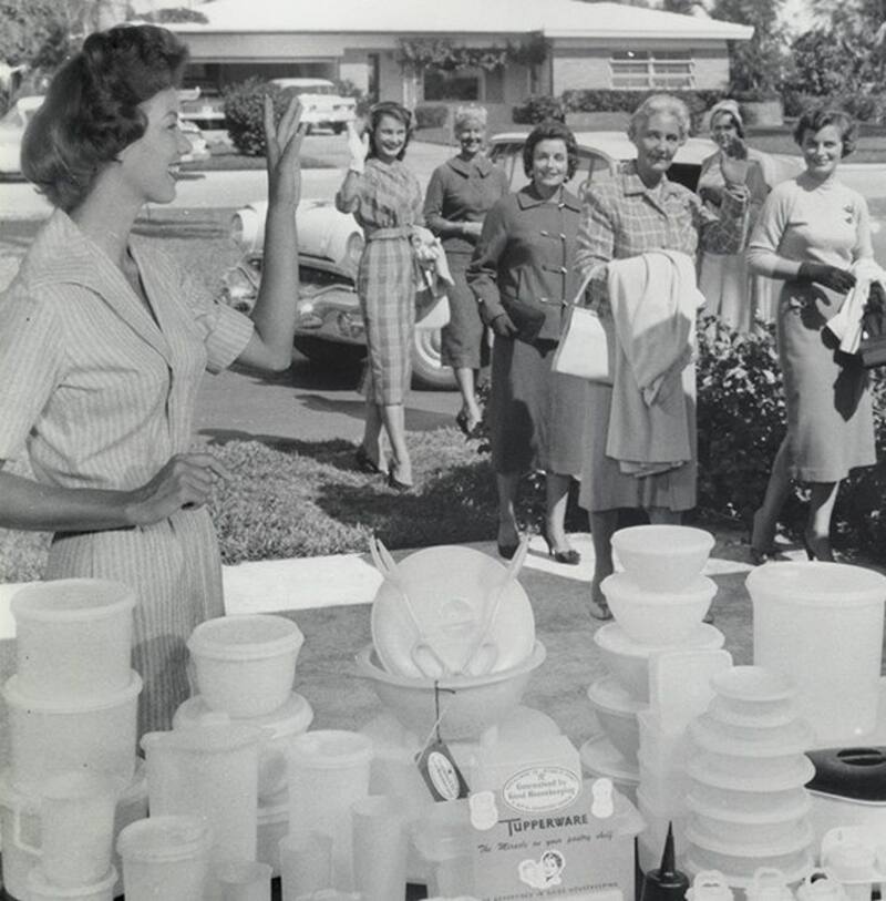 Brownie Wise se dedicaba a vender productos de limpieza puerta a puerta. Descubrió los recipientes de Tupperware y le dio una vuelta de tuerca a las demostraciones. En lugar de eventos comerciales, ella organizaba reuniones en su casa para mostrar los tuppers a sus amigas y familiares.