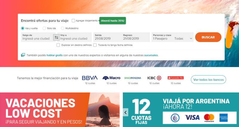 Esas ofertas tienen además alternativas de financiación, como 12 cuotas sin interés en vuelos de Aerolíneas Argentinas con tarjetas de Banco Nación, 12 cuotas sin interés en vuelos de Air Europa con todas las tarjetas Visa y Ahora 12 en todos los productos para viajar por la Argentina.